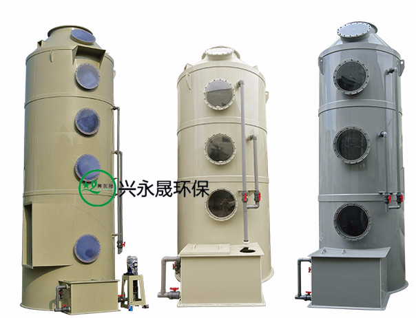 立式洗滌塔的工作原理為氣液兩相立逆接觸,廢氣通過填料層段液相接觸吸收中和,從而達(dá)到廢氣凈化效果。單體塔中填料層可分為單層或多層。
